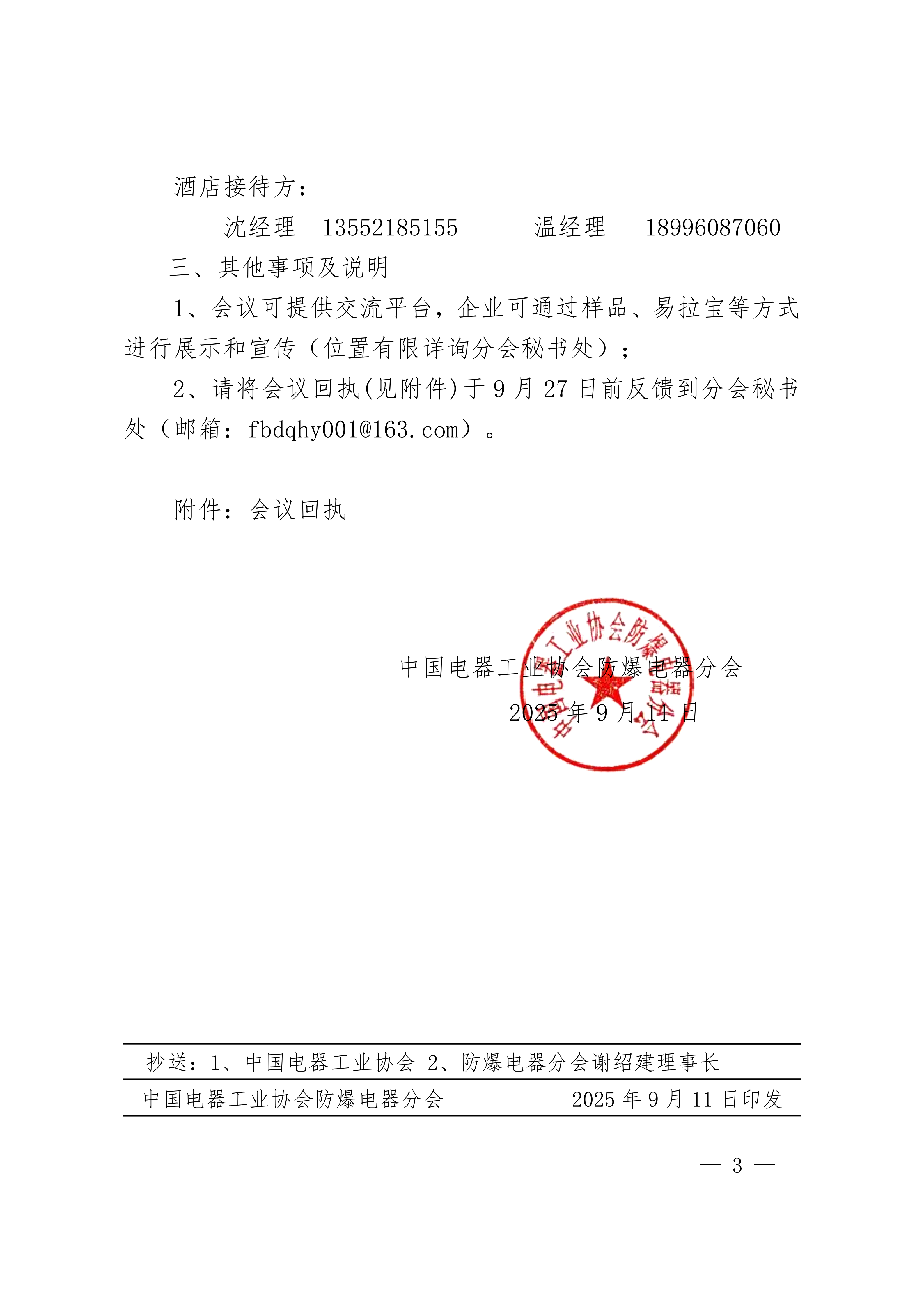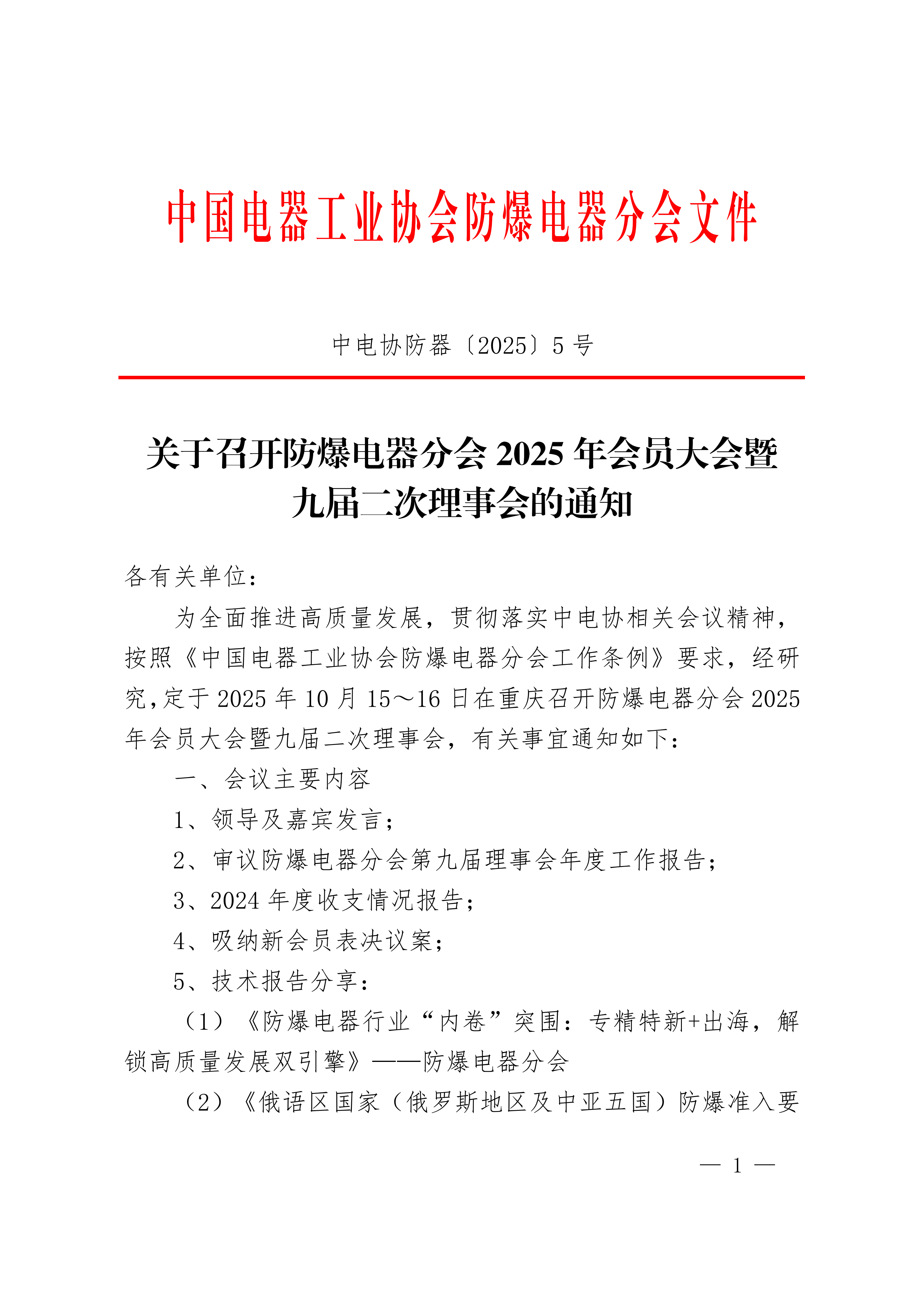 关于召开防爆电器分会2025年会员大会暨九届二次理事会的通知
